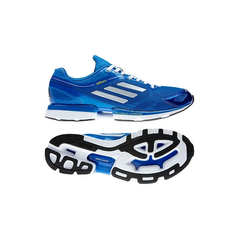 Get moving in the lightweight adizero™ Rush shoes by adidas. These featherweight, dynamic men's running shoes are just 7.5 ounces of high-mileage style, with adiPRENE®+ support in the forefoot, a light synthetic upper and a thin rubber outsole for a close